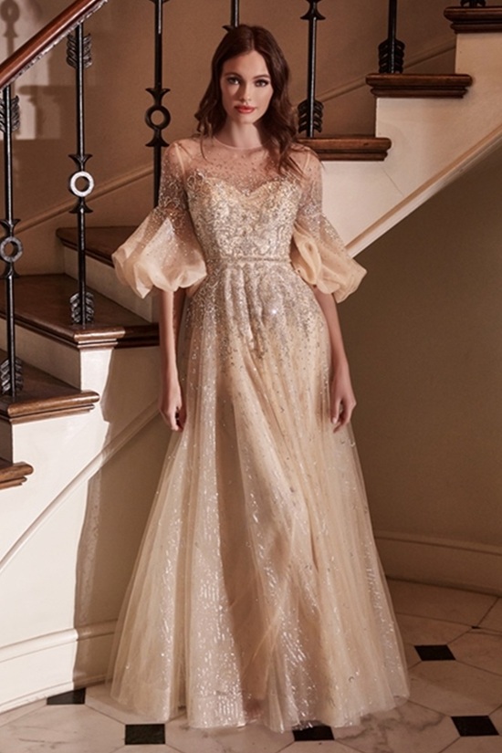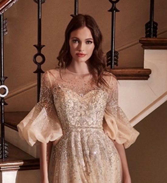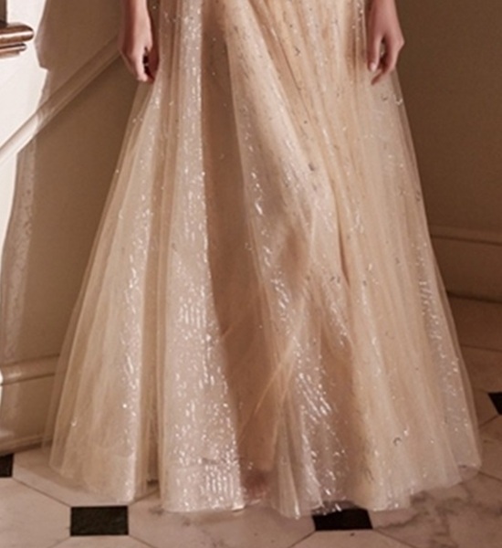 | Material | Layered tulle, Sweetheart neckline, removable matching puff sleeve, sheer bodice |