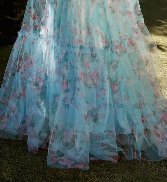 | Material | BLUE FLORAL PRINTED BALL GOWN |
