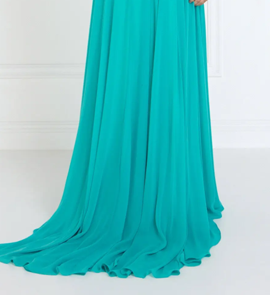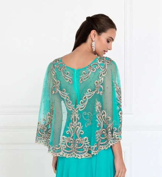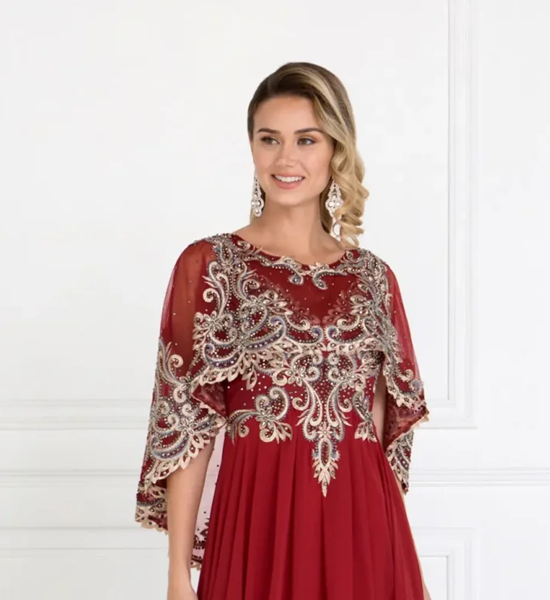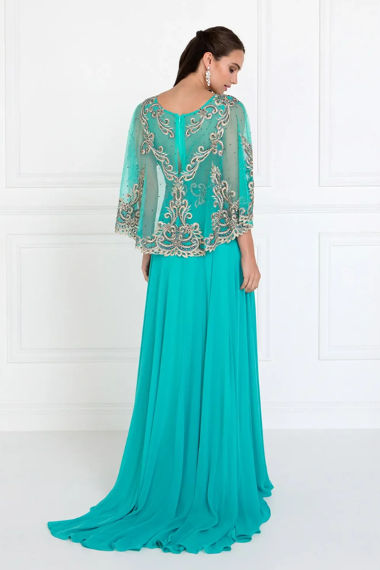 Chiffon A-Line Long Dress with Embroidered Cape Sleeves