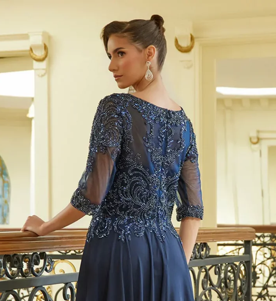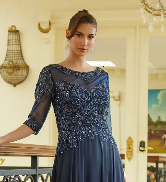 CONTENTS | Chiffon, Mesh, Illusion Sweetheart, 1/2 Sleeve, Beads, Sequin |