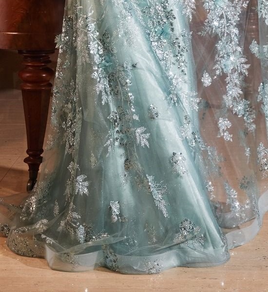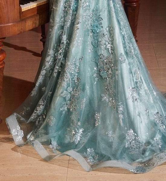 Step into enchantment with our A-line dress—a whimsical wonder adorned in a sequin-embellished floral pattern layering over ethereal tulle.